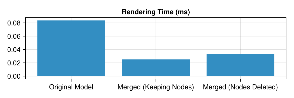 ax = Axis(table_fig[1, 1], title="Rendering Time (ms)", xticks = (1:3, ["Original Model", "Merged (Keeping Nodes)", "Merged (Nodes Deleted)"]))