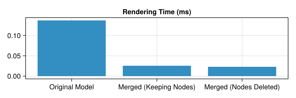 ax = Axis(table_fig[1, 1], title="Rendering Time (ms)", xticks = (1:3, ["Original Model", "Merged (Keeping Nodes)", "Merged (Nodes Deleted)"]))