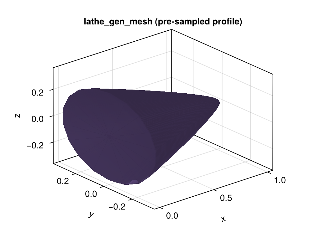 ax = Axis3(fig[1, 1], title="lathe_gen_mesh (pre-sampled profile)")